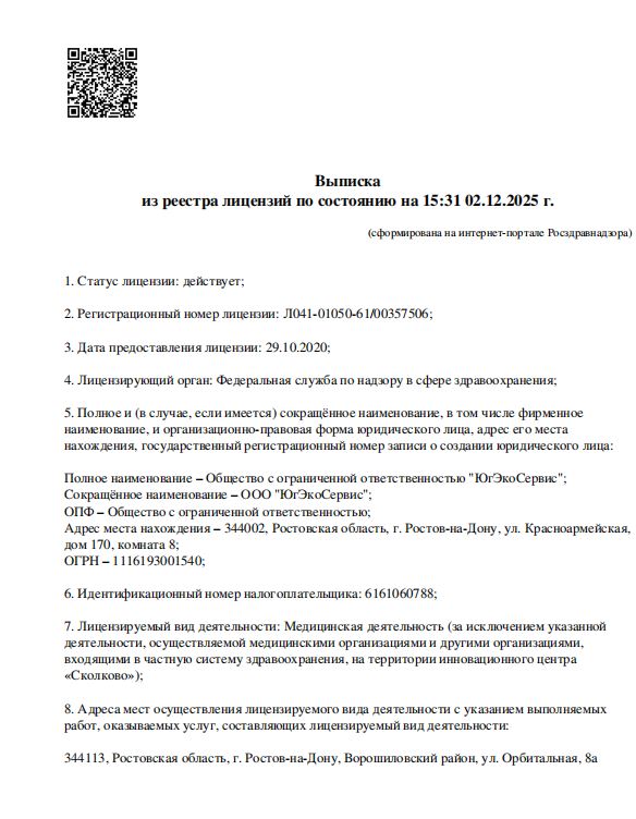 Наша клиника придерживается высоких стандартов лечения и следит за соблюдением необходимых протоколов и правил, чтобы обеспечить пациентам оптимальную безопасность и эффективность терапии.